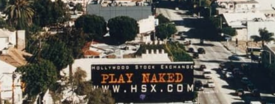 In the early days, HSX experimented with a variety of content creation. In 1999, they launched “HSX.tv” with original web programming aimed at traders, the weekly radio show “Buy, Sell, Hold” for KLSX , and Virtual Producer, “an immersive online experience that allows consumers to participate in every aspect of the production of a film.” Here is a segment of HSX.tv with Max Keiser: